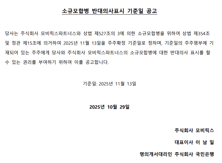 권리주주 확정 기준일 공고